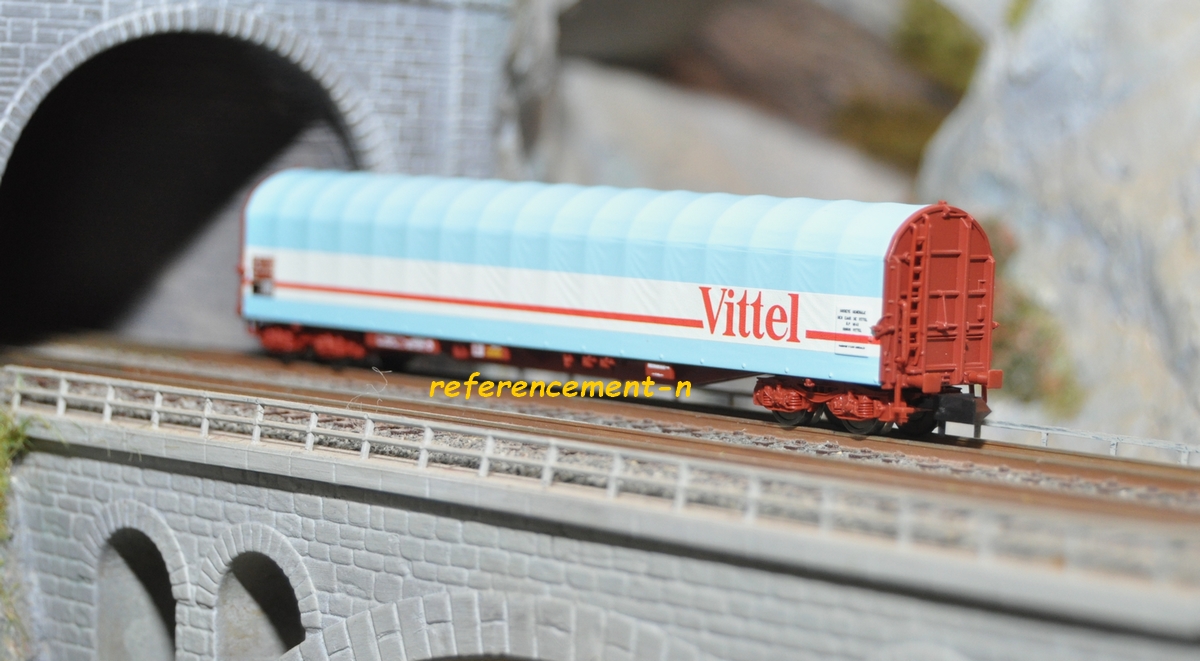 UIC, bâche grise Marquage VITTEL en rouge sur bâche bleue et blanche Attelage court à élongation NEM Longueur : 124 mm Annonce dans Loco Revue N° 884 de mars 2021 Annonce de la sortie dans Loco Revue N° 886 de mai 2021 |