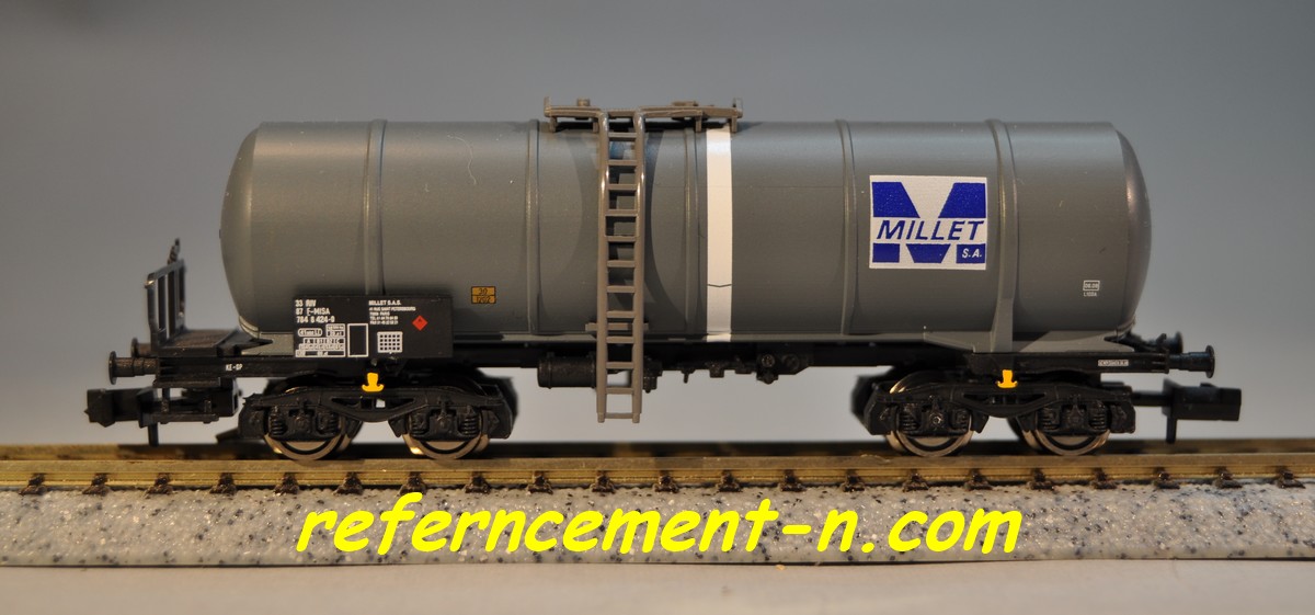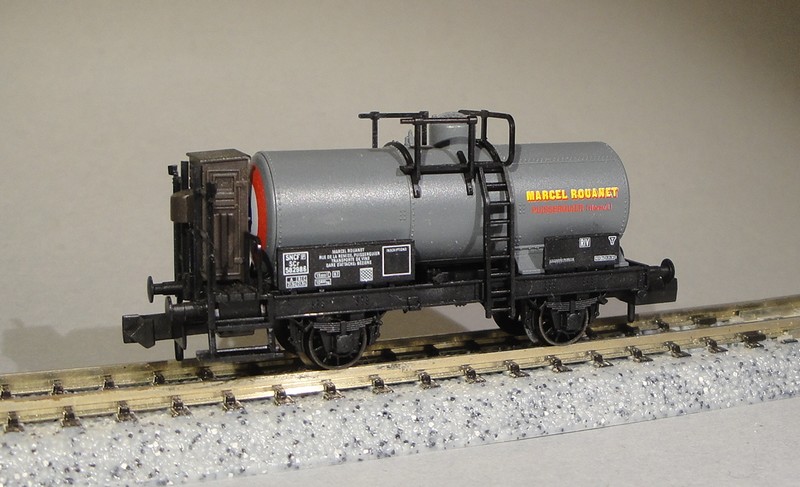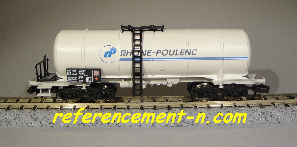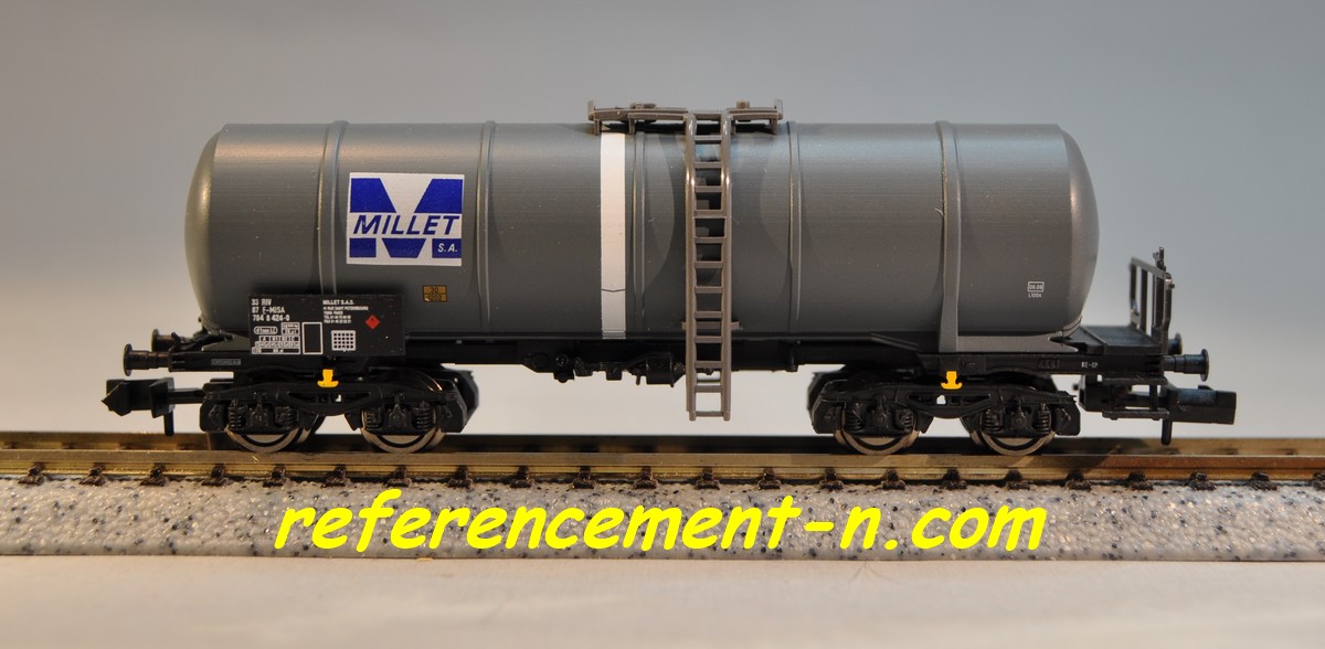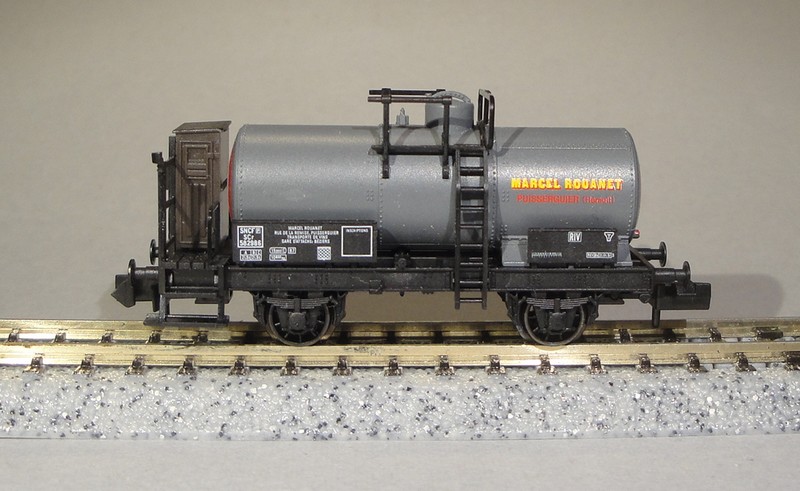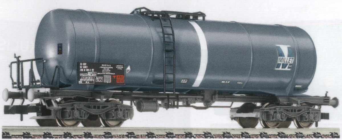 châssis noir, citerne gris foncé Roues à rayons Longueur : 55 mm Présentation Rail Miniature Flash N° 350 de novembre 1993 Présentation Le Train N° 66 de octobre 1993 |