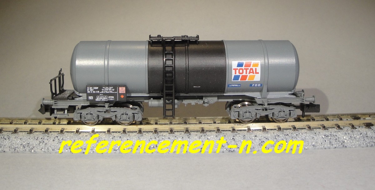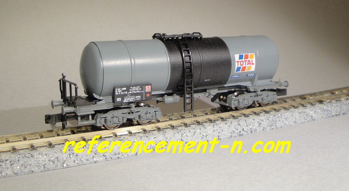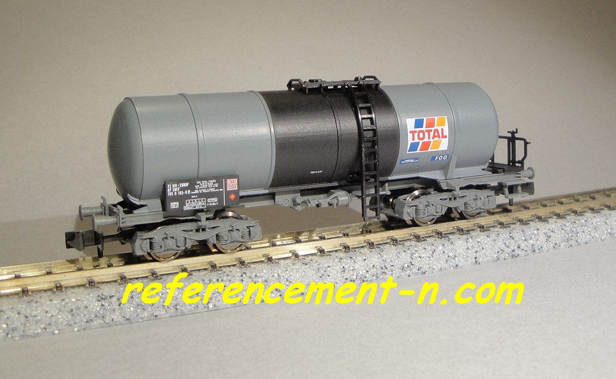 | Description | Wagon citerne boggies gris noir marquage TOTAL | |