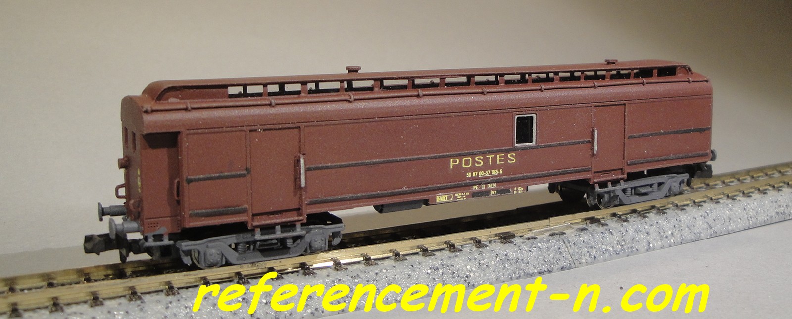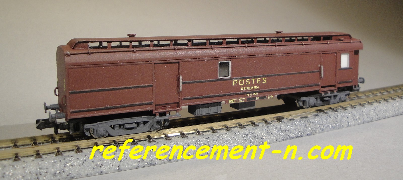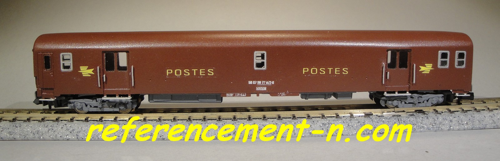 été construits en 1974 par les Etablisements Soulé de Bagnières-de-Bigorre. Voiture de longueur identique aux type X de l'UIC Voiture réalisée en laiton photogravée Logo Poste jaune de 1974 Marquages UIC jaunes A été aussi réalisée en livrée modernisée jaune et blanche |