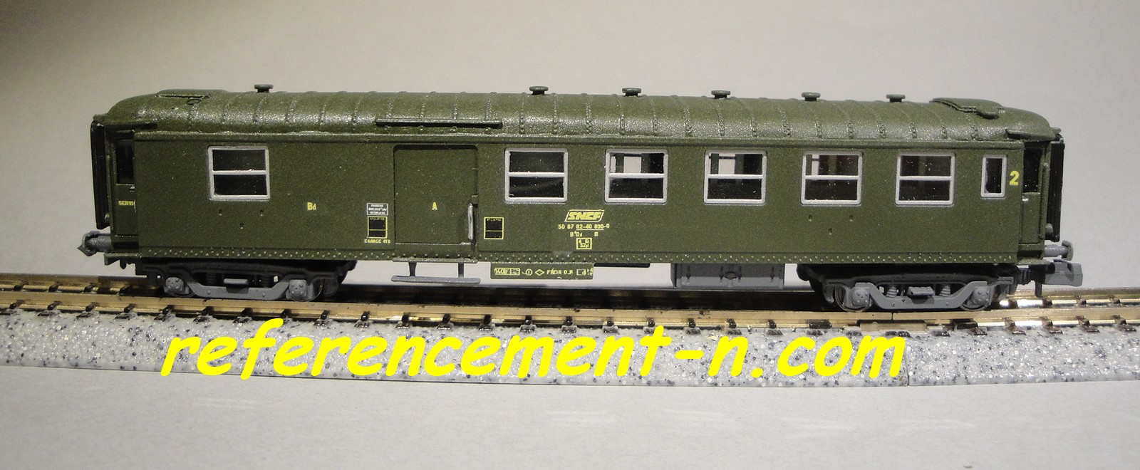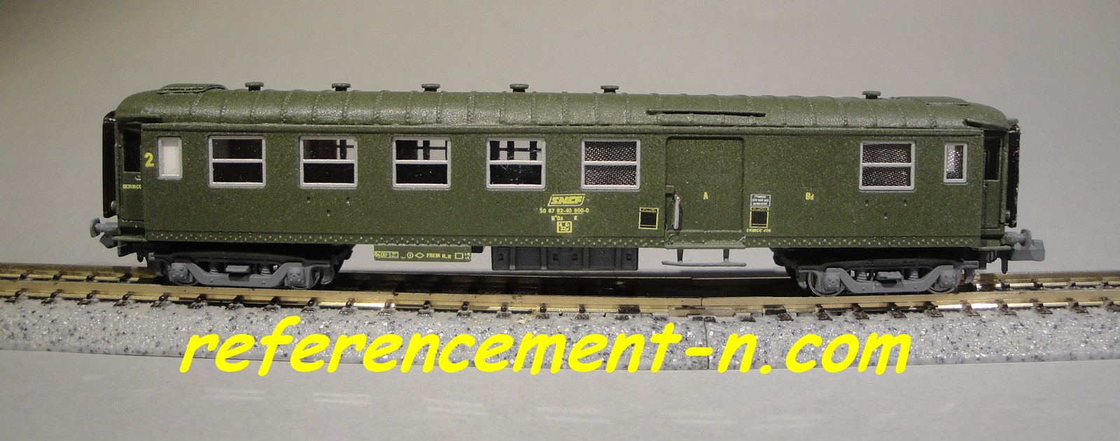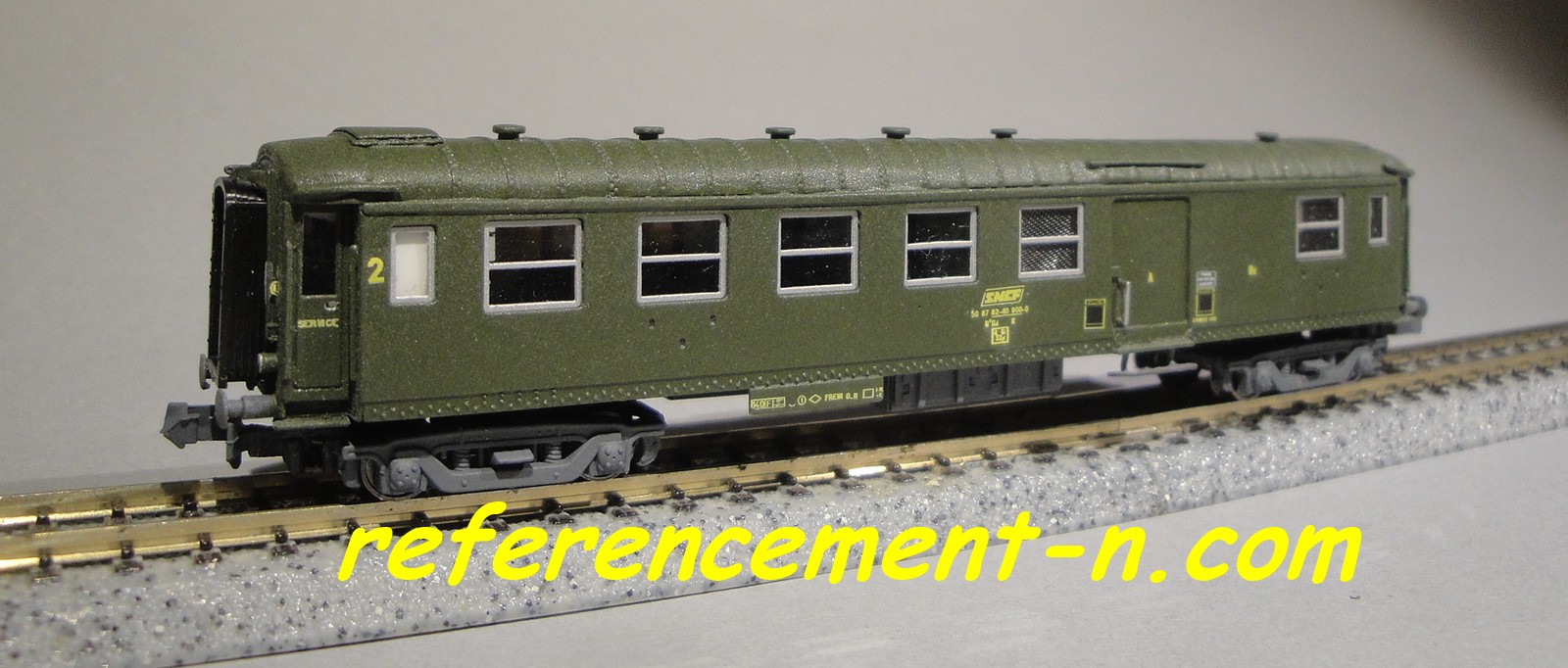 | Description | Voiture OCEM faces lisses type B4D métallisée PLM 2.Cl. avec fourgon à bagages | |