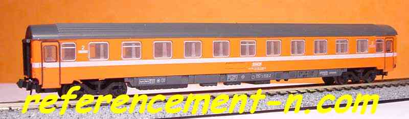 | Description | Voiture voyageurs B11u VU 2.Cl. livrée C1 EUROFIMA orange | |