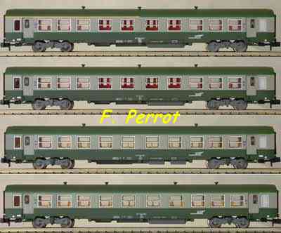 | Description | Coffret de 4 voitures USI 1 voiture 1/2.Cl. et 3 voitures 2.Cl. livrée TER Verte et grise | |