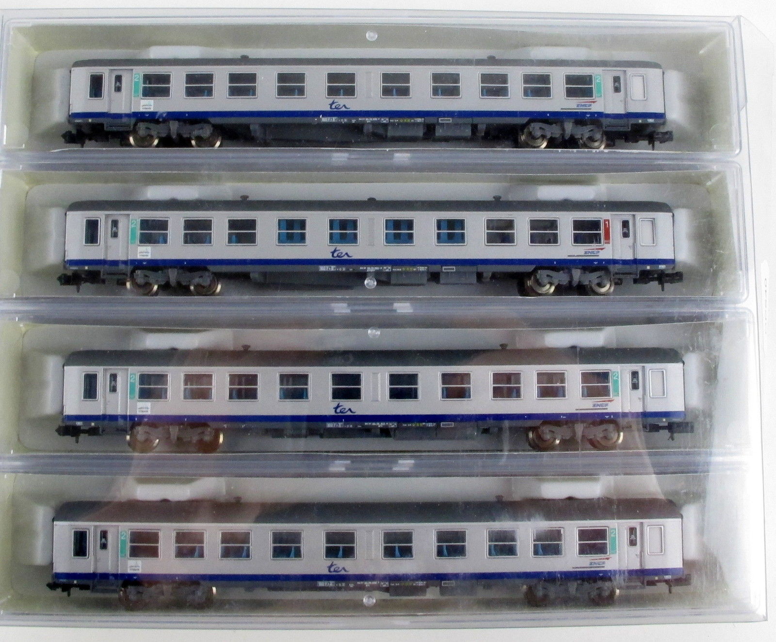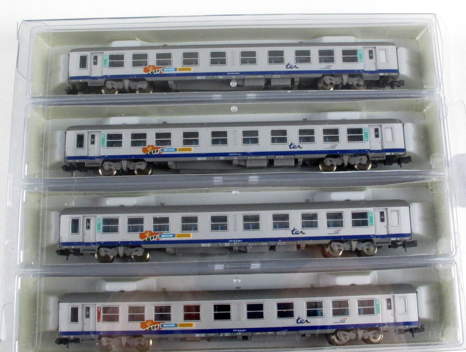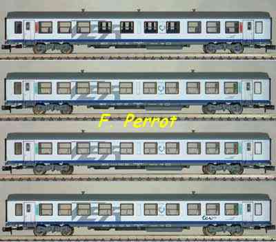 | Description | Coffret de 4 voitures USI 1 voiture 1.Cl. et 3 voitures 2.Cl. livrée TER PACA | |