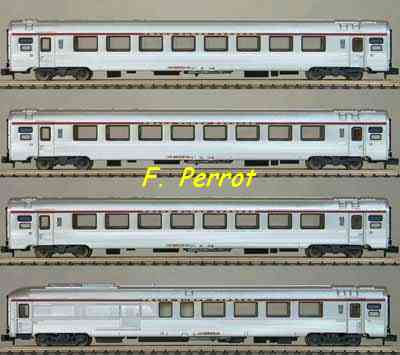 | Description | Coffret de 4 voitures USI 1 voiture 1/2.Cl. et 3 voitures 2.Cl. livrée TER Languedoc Roussillon | |
