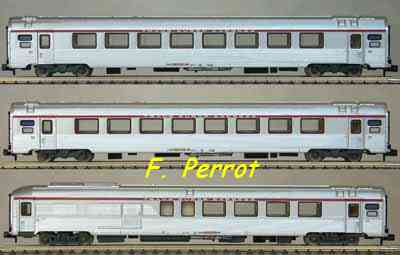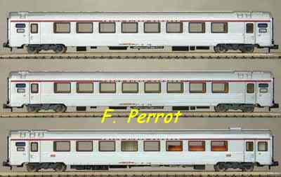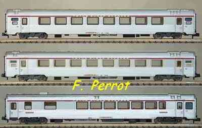| Description | Coffret de 3 voitures Corail VTU dont 2 voitures B10tu et 1 voiture Grill Express service international | |