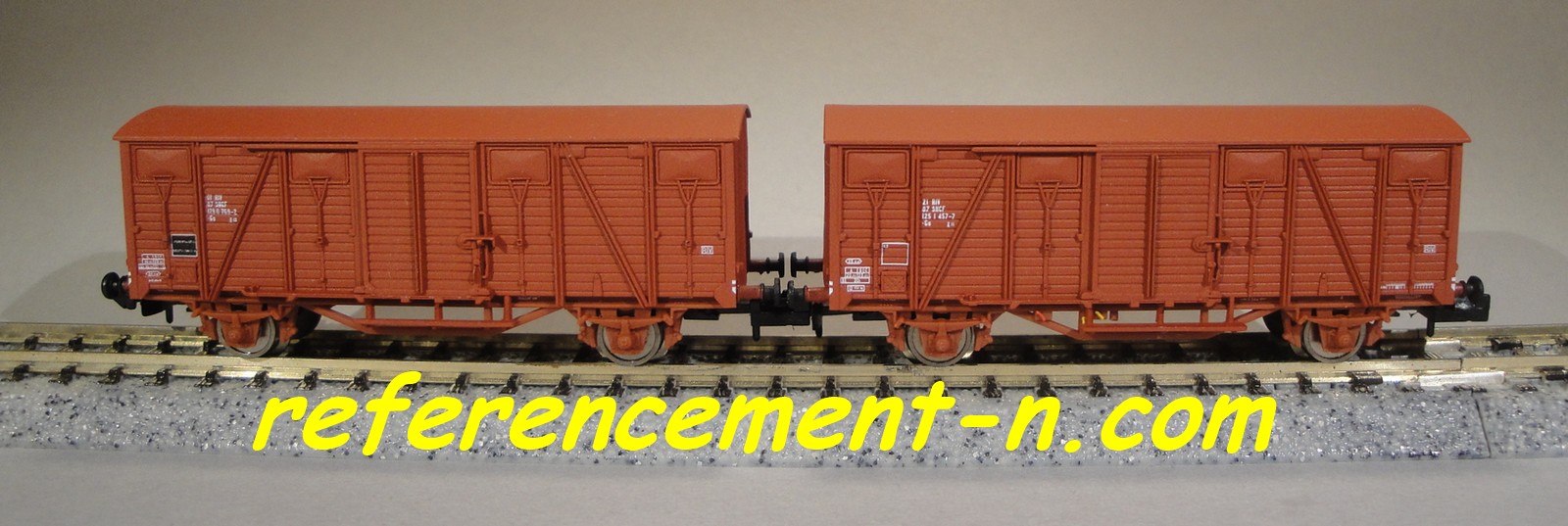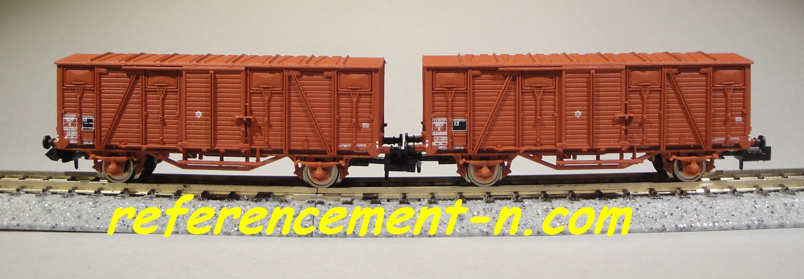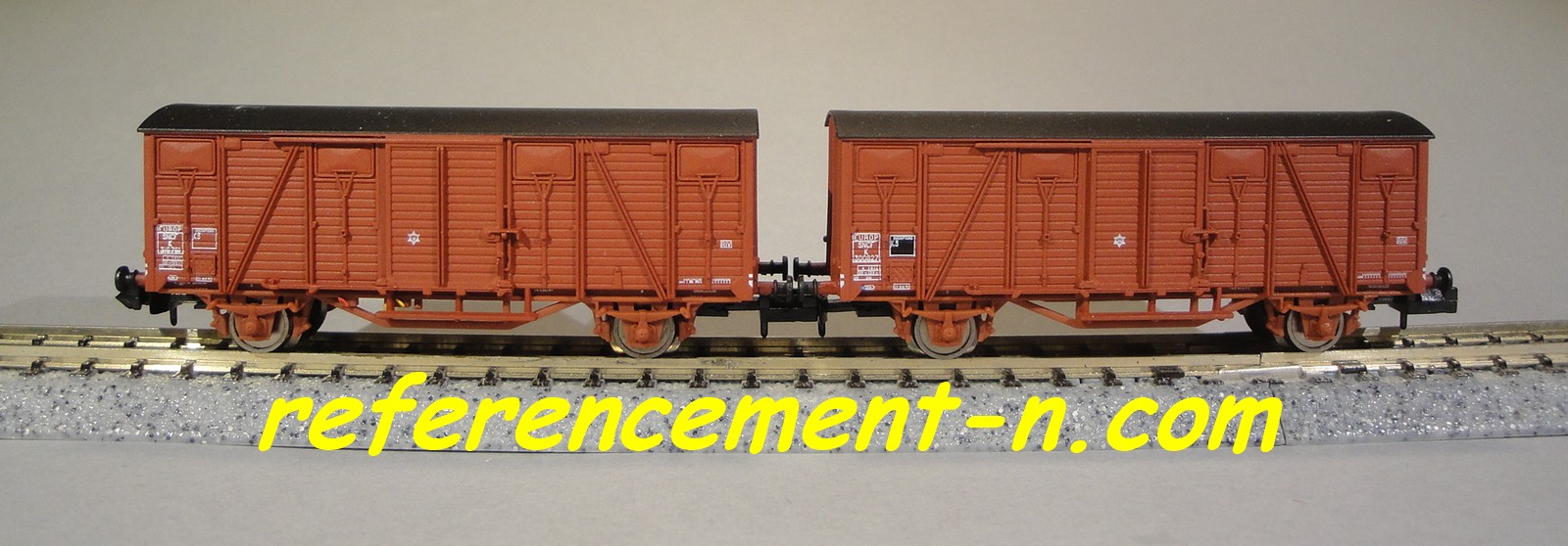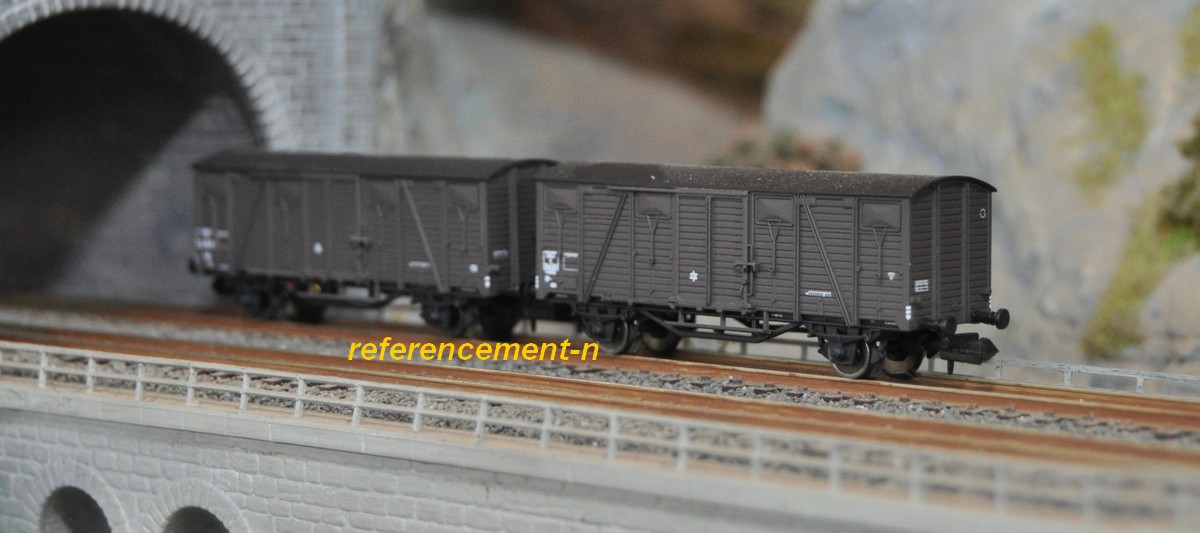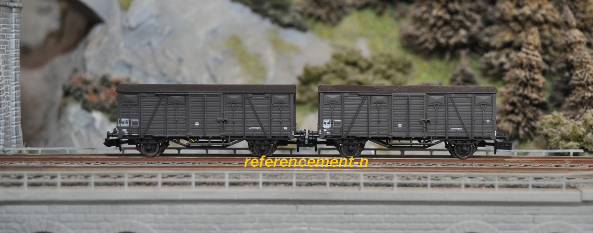 | Description | Coffret de 2 wagons couverts type K à parois bois "frise" et toit Murphy | |