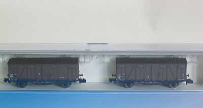 | Description | Coffret de 2 wagons couverts type Gs à parois bois "frise" et toit Murphy | |