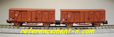 | Description | Coffret de 2 wagons couverts type Gs à parois bois "frises" et toit bombé | |