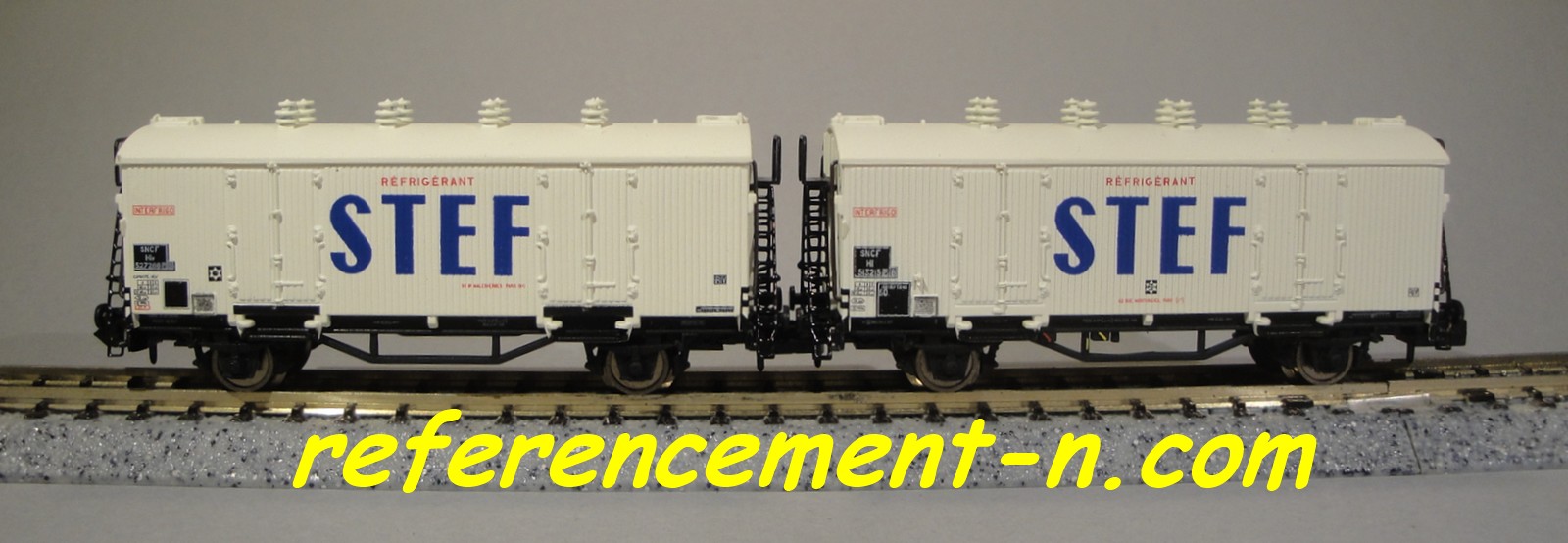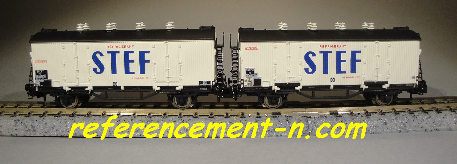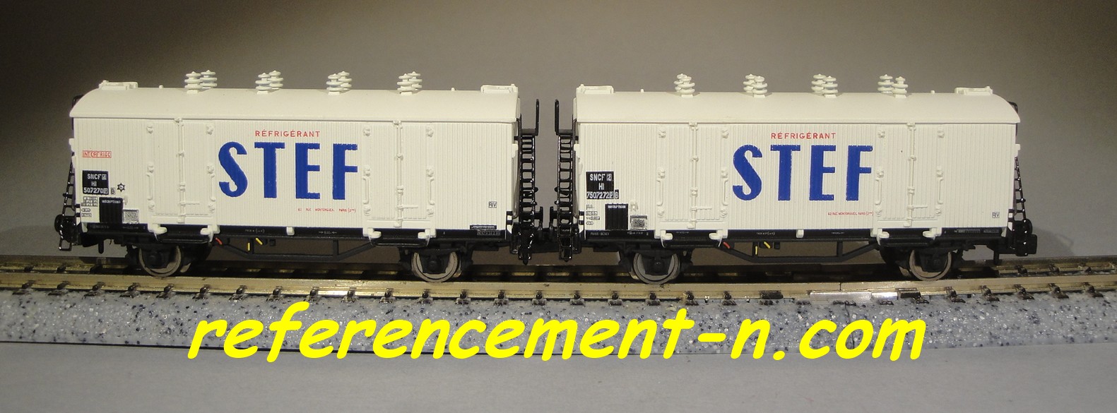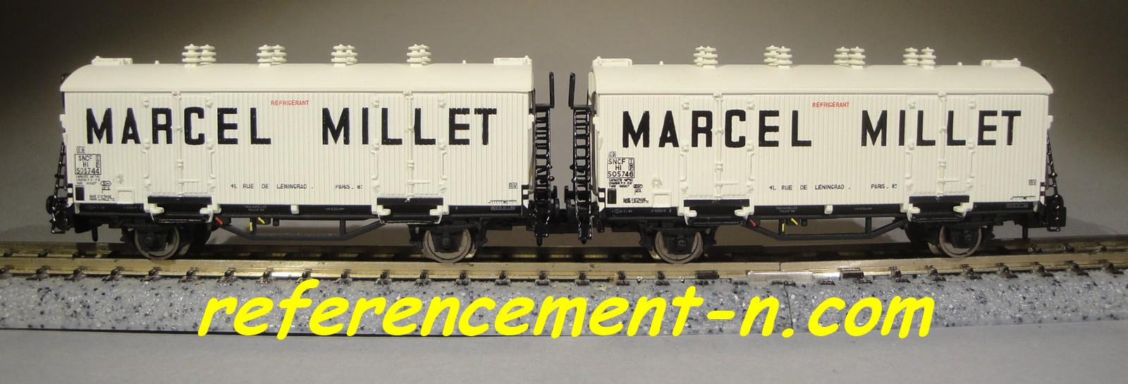 | Description | Coffret de 2 wagons isothermes type Hi à parois bois blanches, toits et aérateurs blancs | |