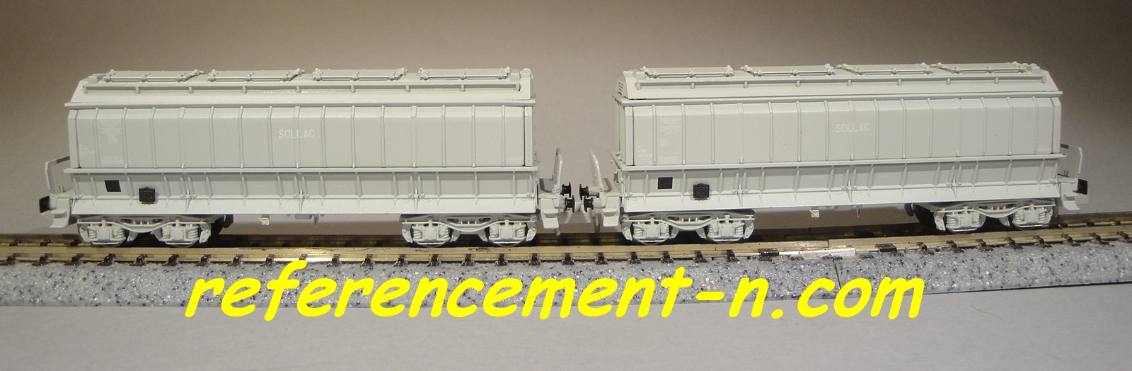 | Description | Coffret de 2 wagons minéraliers type Dc transport de chaux couleur gris clair et marquage SOLLAC blanc dans cadre noir | |