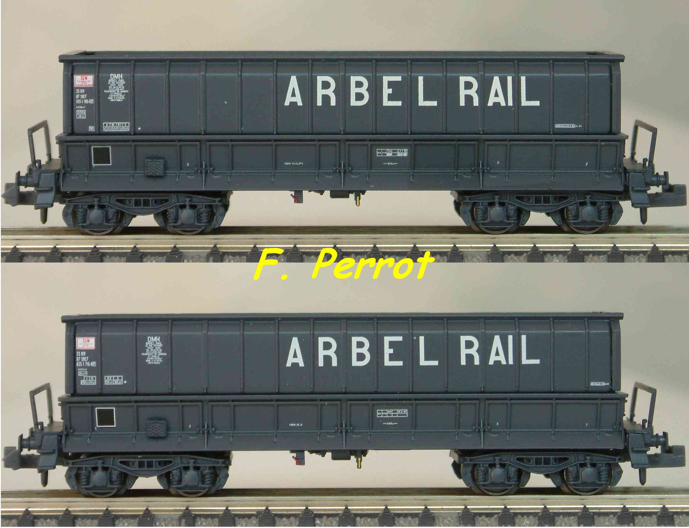 | Description | Coffret de 2 wagons minéraliers type Dmh couleur gris moyen avec marquage MIDI ARBEL | |