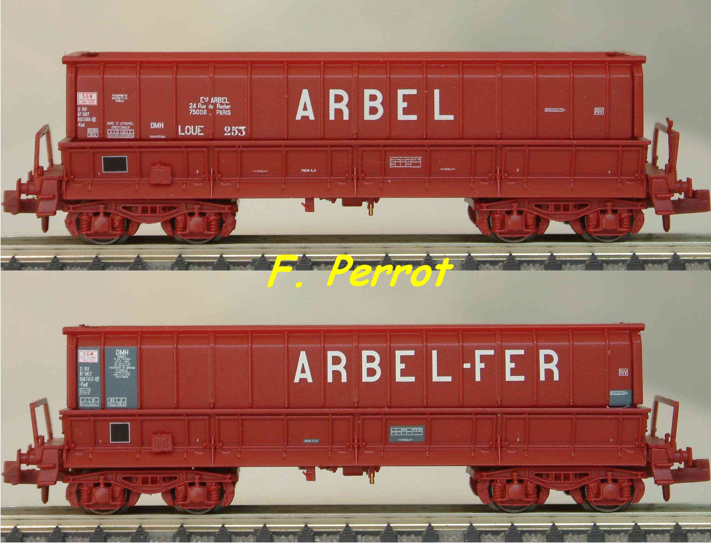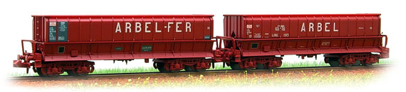 | Description | Coffret de 2 wagons minéraliers type Dmh couleur rouge UIC ARBEL et ARBEL FER | |