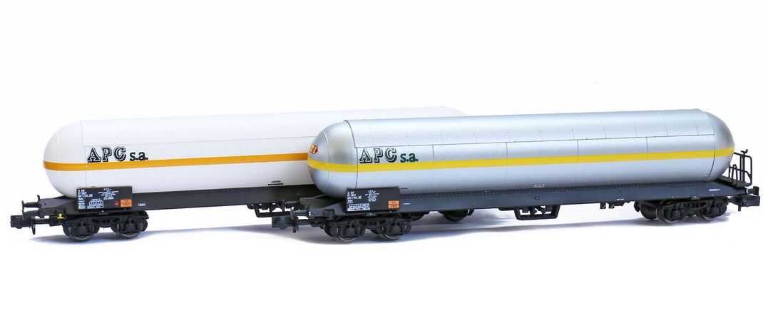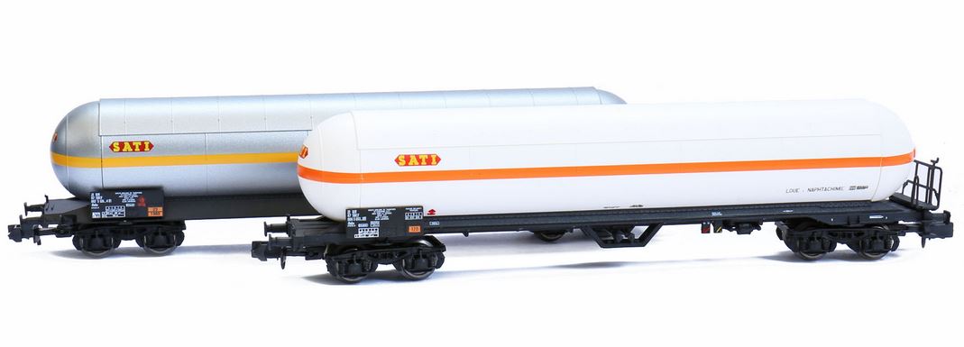 Livrée blanche et gris inox Marquage SATI sur les deux citernes Présence d'une passerelle serre frein sur les deux wagons Annonce de la sortie à Nuremberg dans Loco Revue N° 800 de mars 2014 |