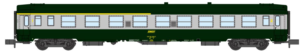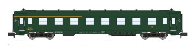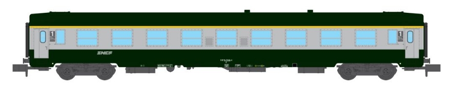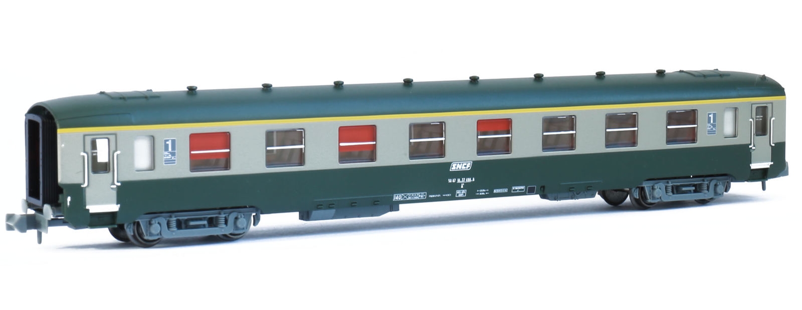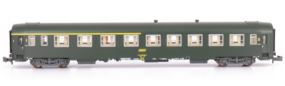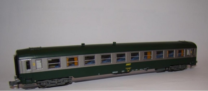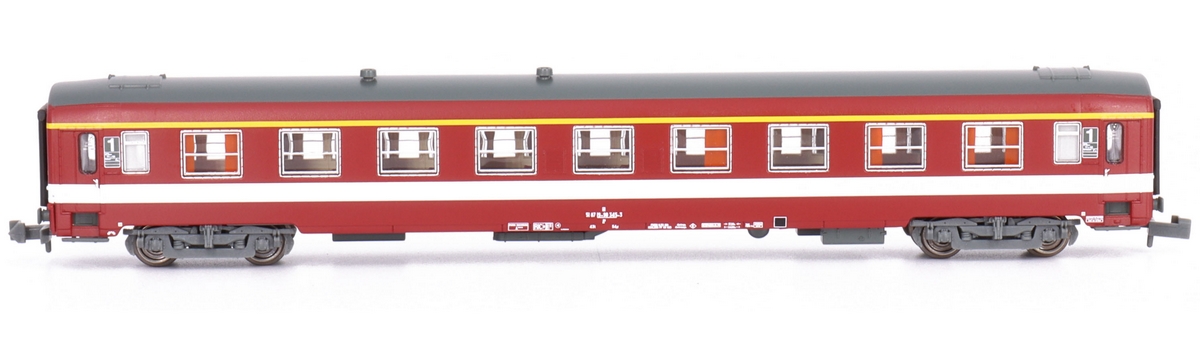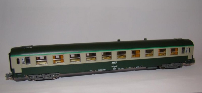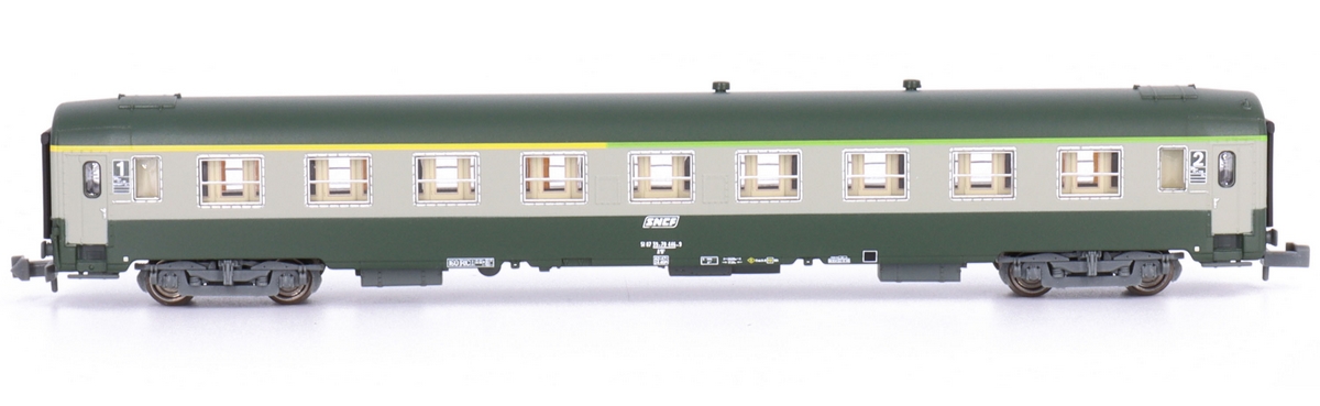 une voiture UIC A9 1.CL. et une voiture UIC B10 2.Cl. |