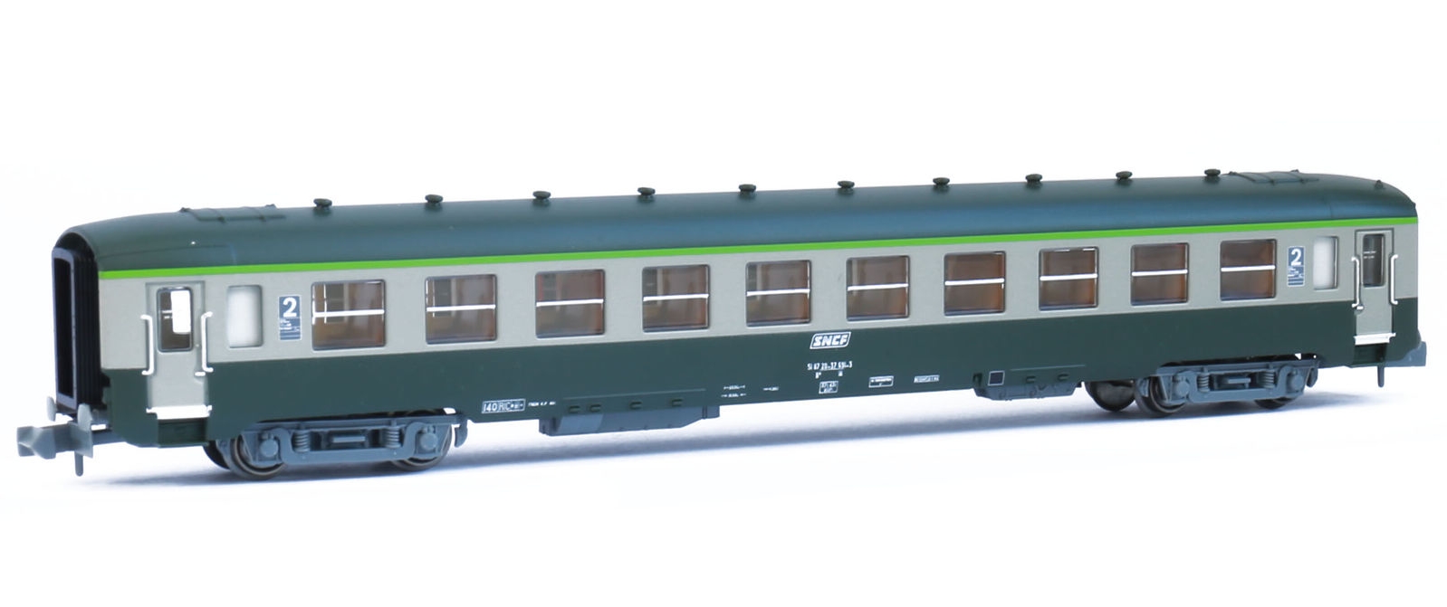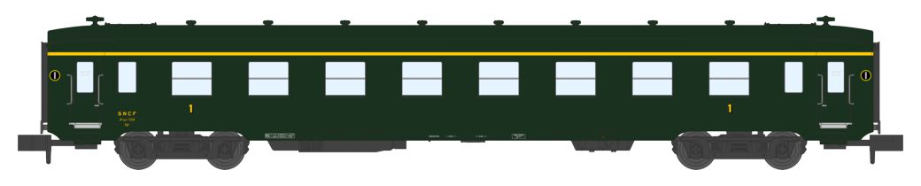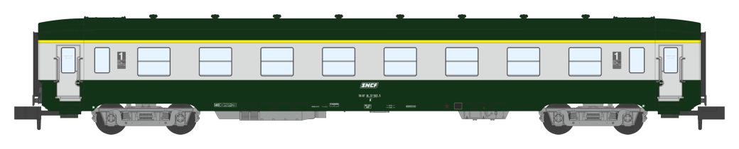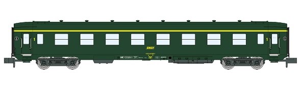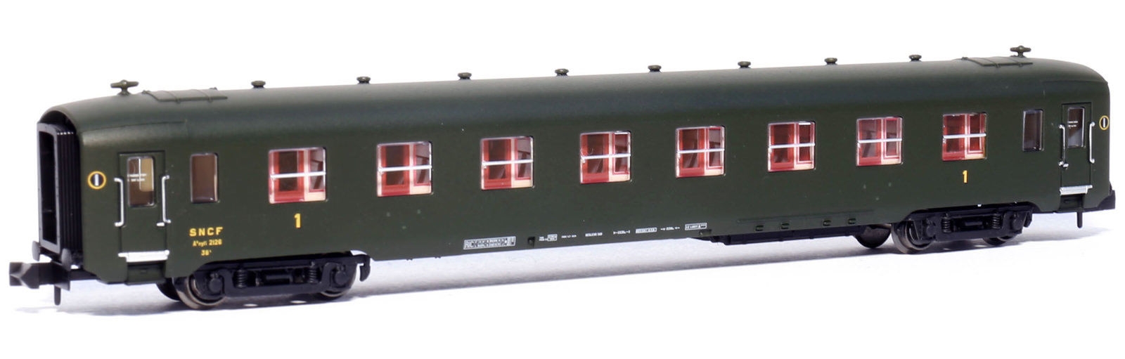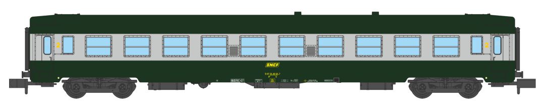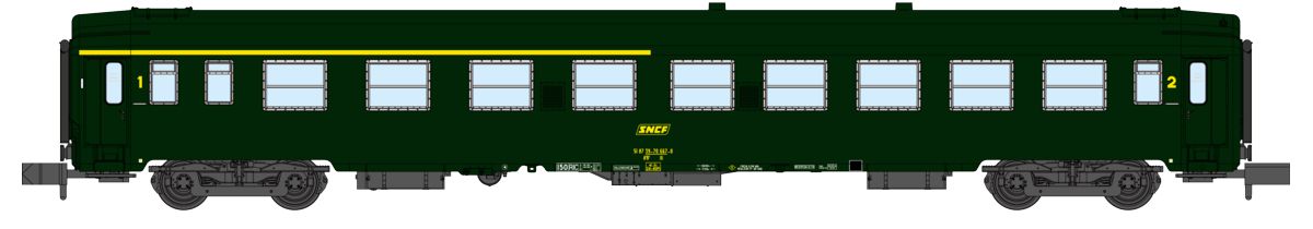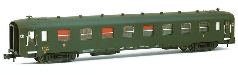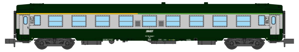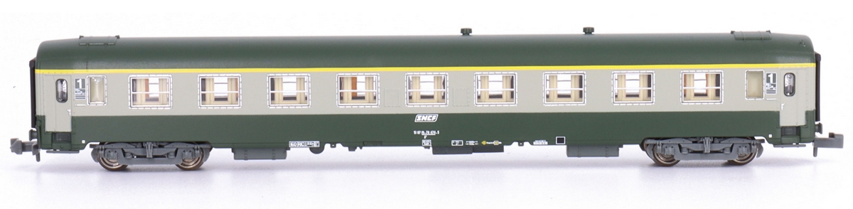 une voiture UIC A9 1.CL. et une voiture UIC B10 2.Cl. |