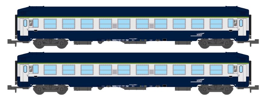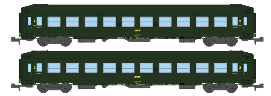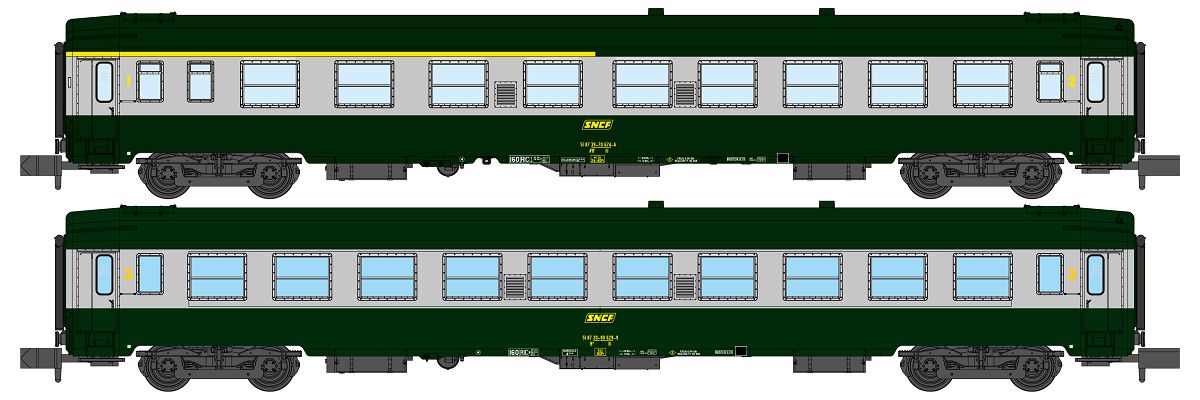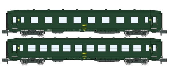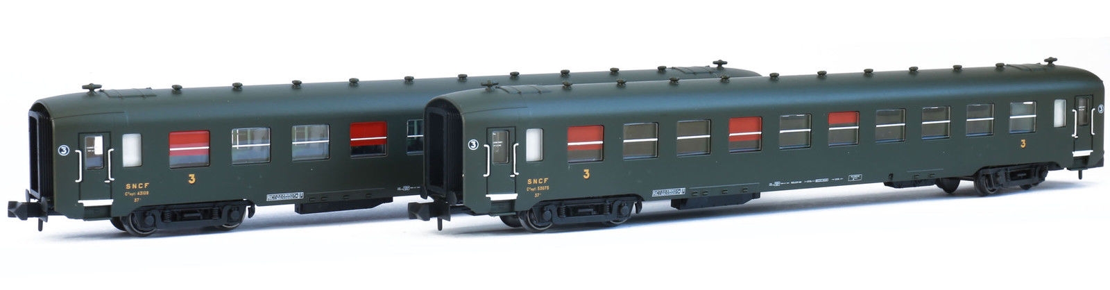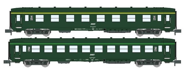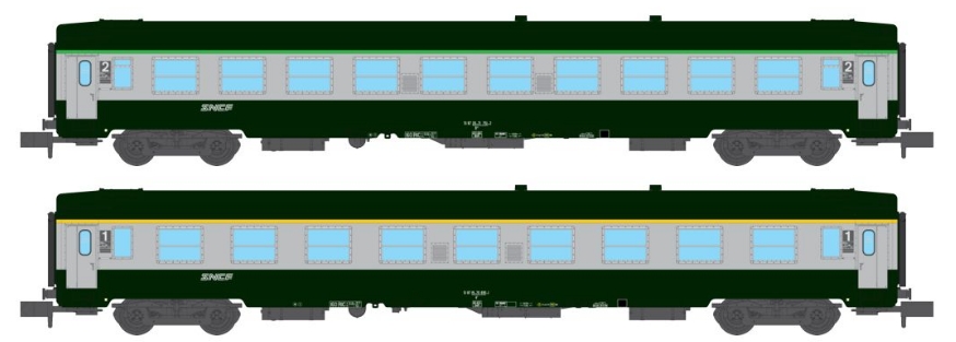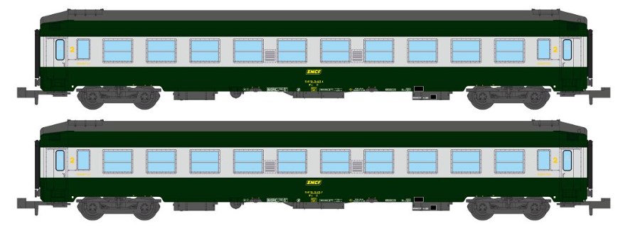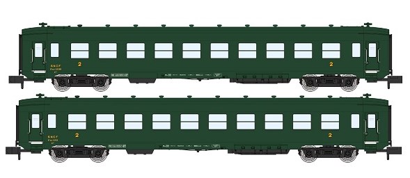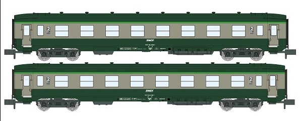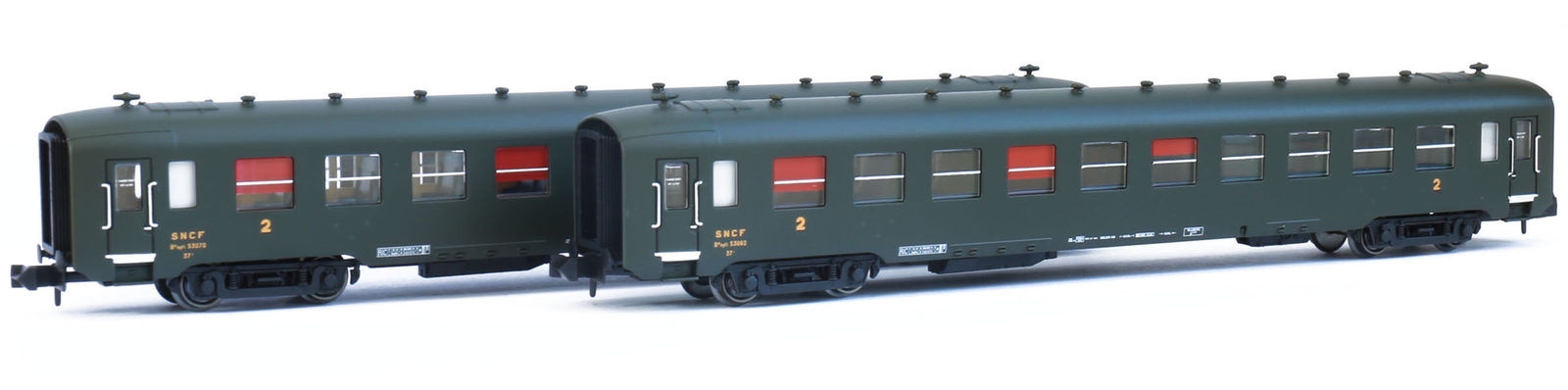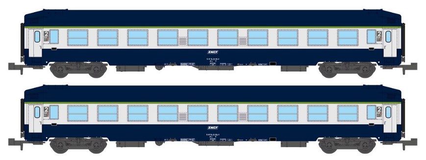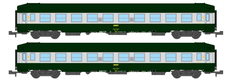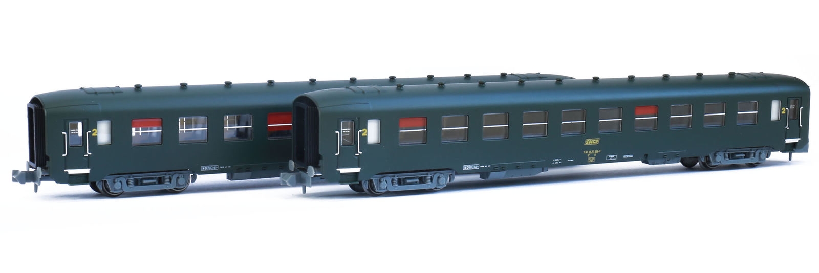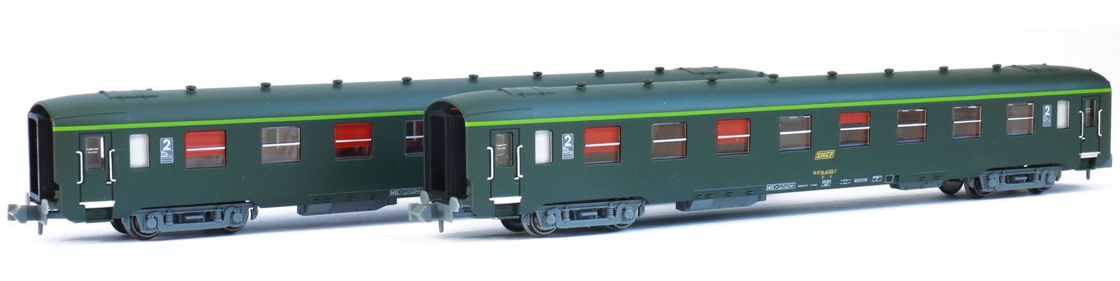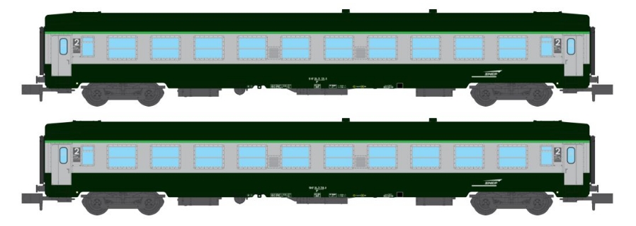 Coffret de deux voitures couchettes UIC 2.Cl. B9c9x à toit bas en