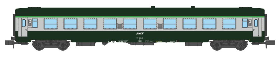 Voiture couchettes UIC 2.Cl. B9c9x à toit bas en livrée TEN |
