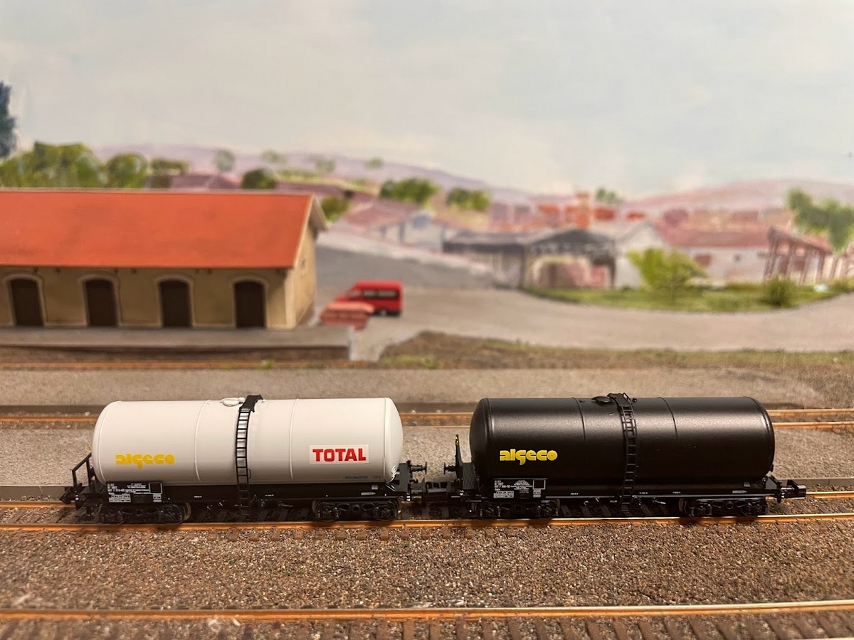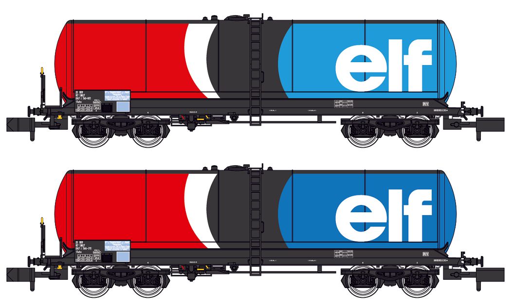 Coffret de deux wagons citerne type ANF longue pour transport de lubrifiants |