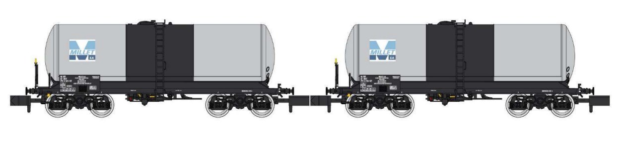 Coffret de deux wagons citernes type ANF longue pour transport d'engrais liquides |