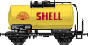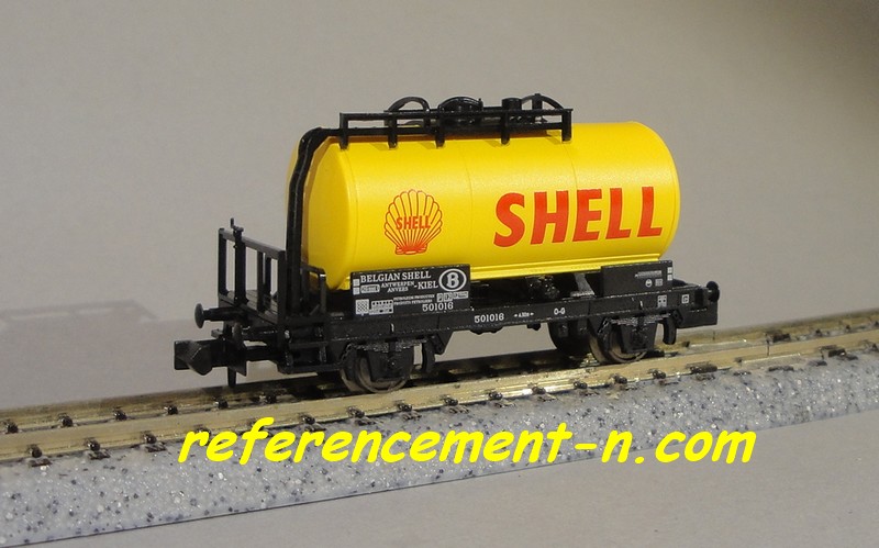 6 couverts bruns à esieux avec immatriculations différentes Les 6 wagons citernes de la Belgian Shell d'Anvers sont immatriculés en Belgique (SNCB) |
