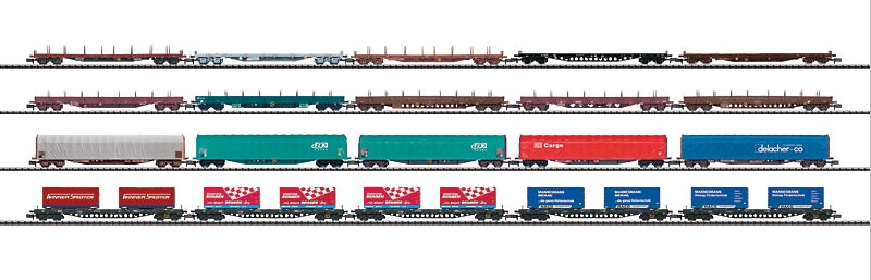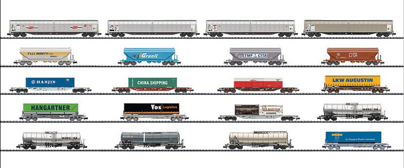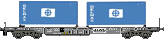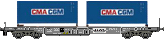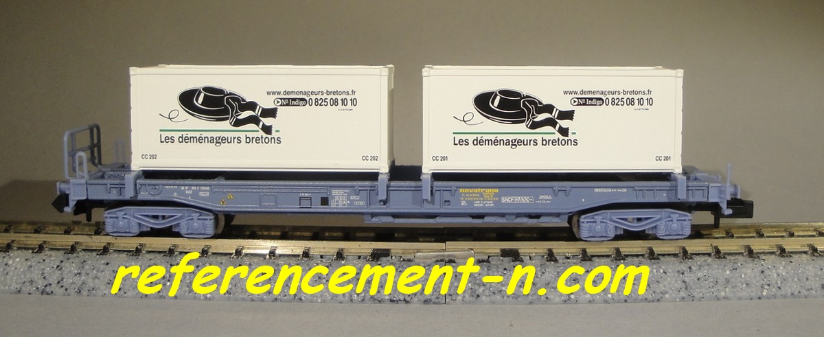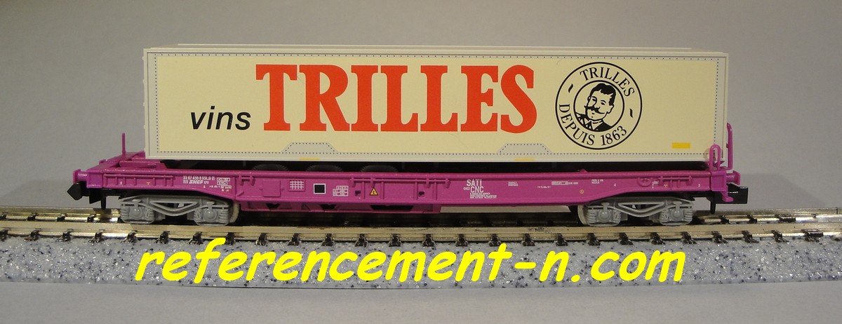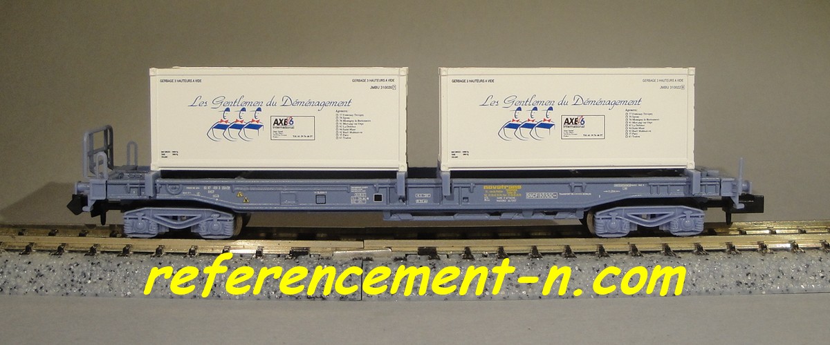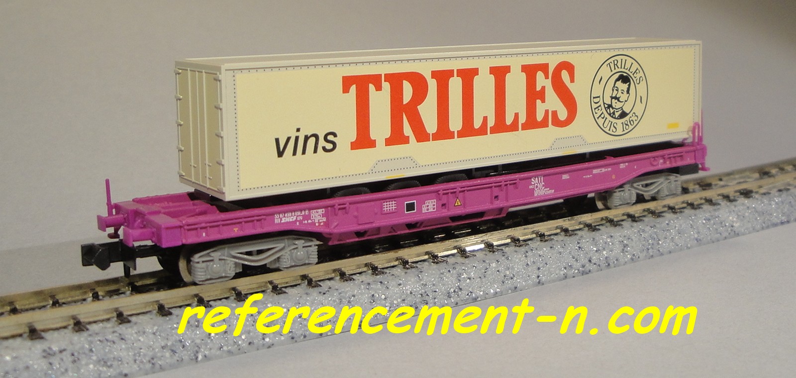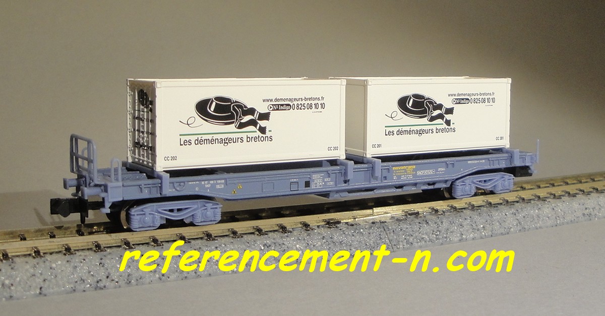 Chargement de contenbeurs 20 et 40 pieds Conteneur 40 pieds vert marquage CNC Conteneurs bleus 20 pieds marquage CMA CG Conteneurs citenrnes gris et verts marquage CGAT INER Bogies Y-25 moulés Ranchers non montés Attelages à élongation Longueur totale de la rame : 372 mm Annonce dans Rail Miniatire Flash N° 647 de mars/avril 2020 Annonce de la sortie dans Loco Revue N° 896 de mars 2022 |
