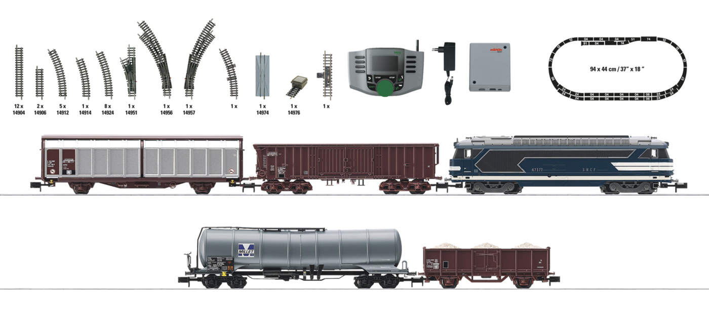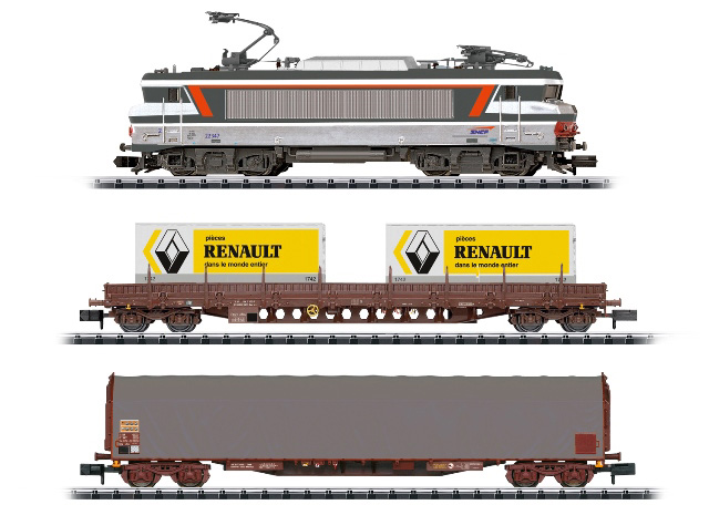 | Description | coffret digital comprenant une locomotive électrique MRCE série 185.1, d'un wagon plat à bogies Res et d'un wagon baché Rils | |
