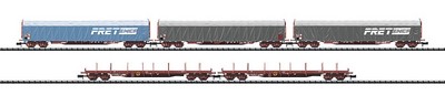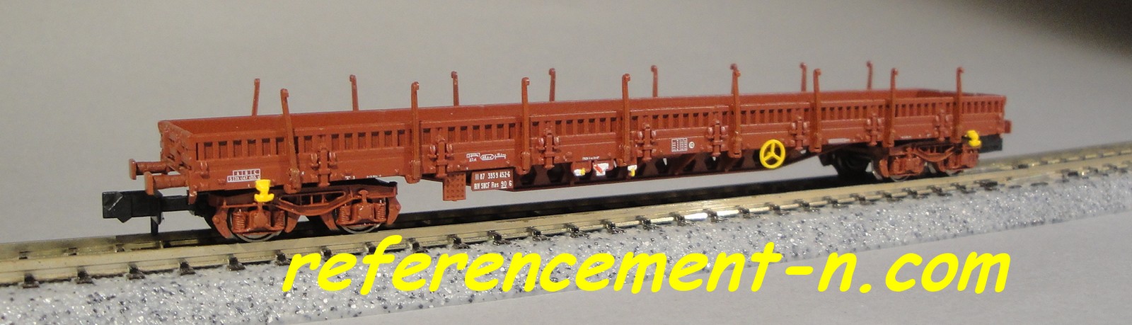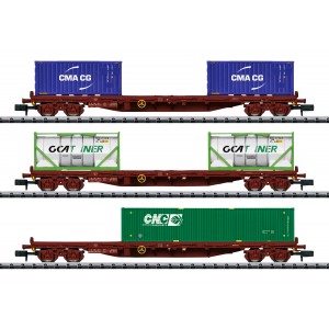 | Description | coffret de trois wagons plats à bogies de type Rs | |