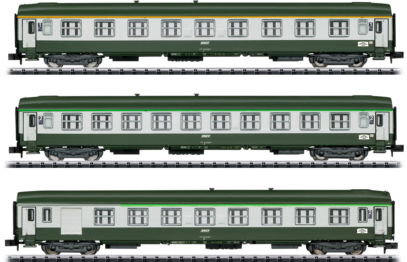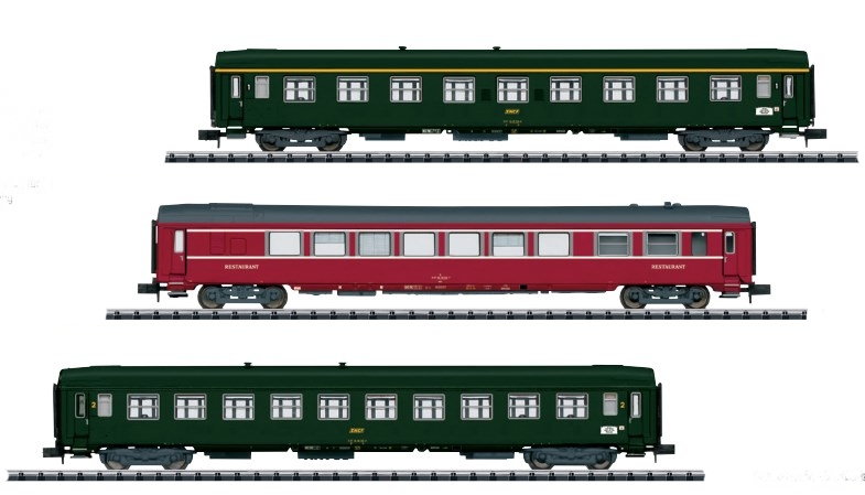 | Description | Coffret de trois voitures de type UIC-Y, une A9 1.Cl., une B10 2.Cl. et une voiture restaurant, "NICE - PARIS" | |