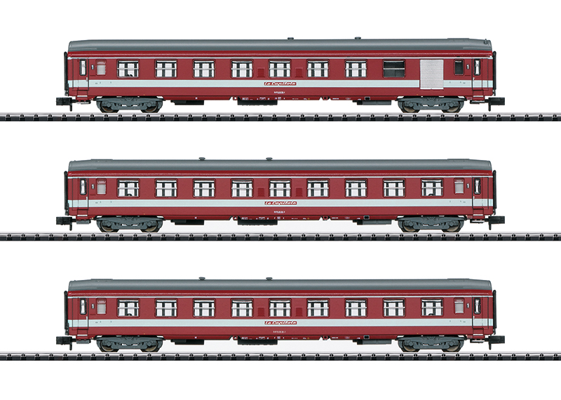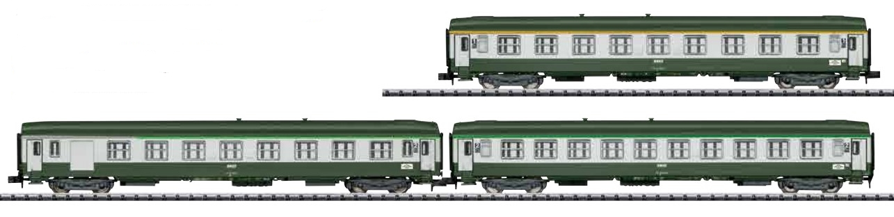 | Description | Coffret de trois voitures de type UIC-Y, deux B10 2.Cl. et une A7d 1.Cl. fourgon | |