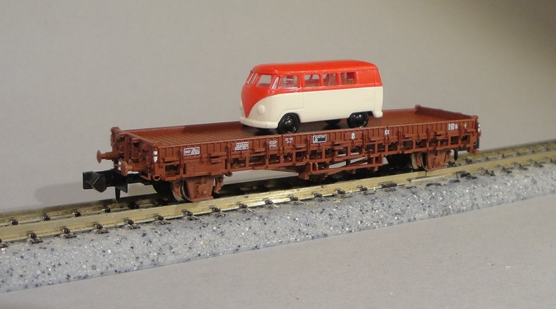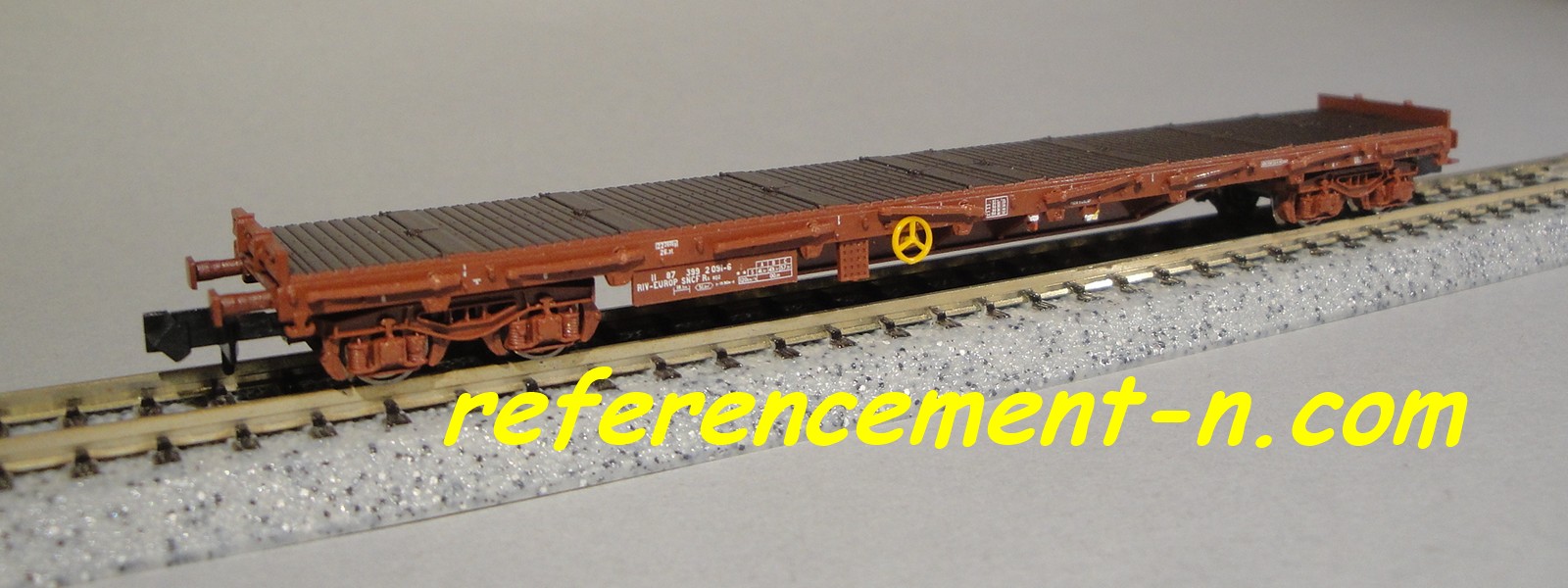 immatriculé à la SNCF Wagon Res et locomotive immatriculés à la FD (Allemagne) Attelages à élongation Longueur totale de la rame : 366 mm |