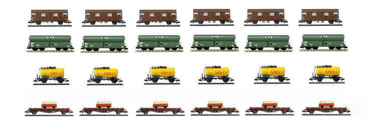 wagon couvert à essieux brun : SNCF Kv 287 155 15655-02 wagon couvert à essieux brun : SNCF Kv 287 177 15655-03 wagon couvert à essieux brun : SNCF Kv 288 110 15655-04 wagon couvert à essieux brun : SNCF Kv 288 232 15655-05 wagon couvert à essieux brun : SNCF Kv 288 266 15655-06 wagon couvert à essieux brun : SNCF Kv 288 420 15655-07 wagon trémie à boggies gris : SNCF SVymf 539 459 15655-08 wagon trémie à boggies gris : SNCF SVymf 539 460 15655-09 wagon trémie à boggies gris : SNCF SVymf 539 465 15655-10 wagon trémie à boggies gris : SNCF SVymf 539 466 15655-11 wagon trémie à boggies gris : SNCF SVymf 539 468 15655-12 wagon trémie à boggies gris : SNCF SVymf 539 470 15655-13 wagon plat chargé d'un combi VW noir toit jaune : SNCF JQhrv 151 954 15655-14 wagon plat chargé d'un combi VW blanc toit rouge : SNCF JQhrv 151 954 15655-15 wagon plat chargé d'un combi VW vert toit jaune : SNCF JQhrv 151 912 15655-16 wagon plat chargé d'un combi VW jaune toit noir : SNCF JQhrv 151 917 15655-17 wagon plat chargé d'un combi VW rouge toit blanc : SNCF JQhrv 151 976 15655-18 wagon plat chargé d'un combi VW jaune toit vert : SNCF JQhrv 151 938 15655-19 wagon citerne essieux jaune : SNCB 501012 15655-20 wagon citerne essieux jaune : SNCB 501015 15655-21 wagon citerne essieux jaune : SNCB 501025 15655-22 wagon citerne essieux jaune : SNCB 501016 15655-23 wagon citerne essieux jaune : SNCB 501028 15655-24 wagon citerne essieux jaune : SNCB 501033 |