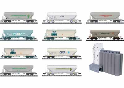 | Description | 10 wagons dédiés au transport de ciment, immatriculation SNCF | |