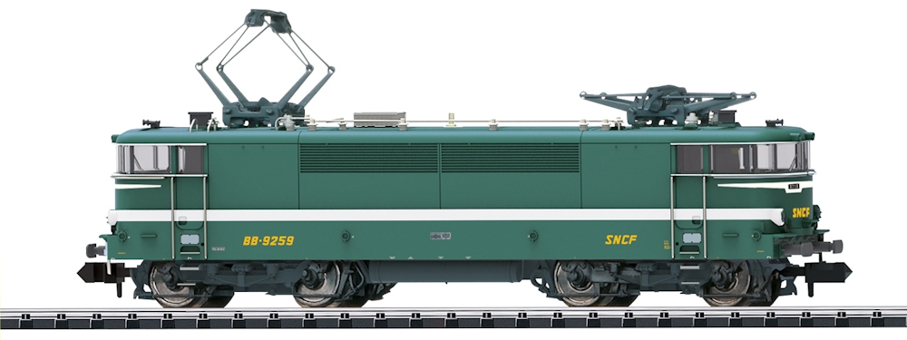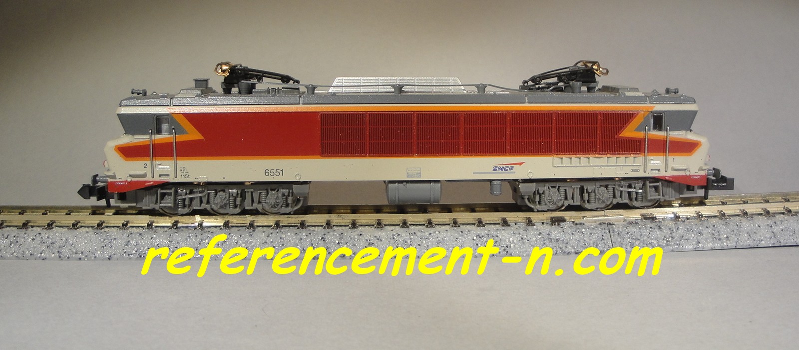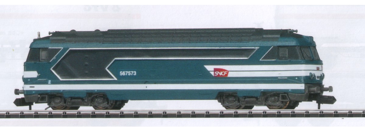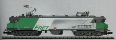avec bande orange de ceinture de caisse vers 1994 Volant d'inertie, 4 essieux moteurs, bandages d'adhérence Inversion des feux avants et arrières par leds (rouges et blancs) Version digitale sonorisée Eclairage de la cabine en digital Attelages court à élongation Prise de courant par les roues ou le pantographe Longueur : 101 mm Annonce dans le catalogue nouveautés de janvier 2023 Annonce dans Loco Revue N° 908 de mars 2023 Annonce dans Rail Miniature Flash N° 665 de mars/avril 2023 Historique du modèle réel |
