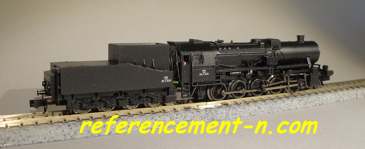 BR 43 DRG Caisses en métal injecté Affectée en 1945 à Audun le Roman puis à Metz Frescaty (de 1949 à 1954 - version reproduite ici), elle a été radie en 1957 à Thionville Interface digitale NEM 651 dans le tender Moteur avec volant d'inertie Moteur dans le corps de la chaudière de la locomotive Modèle de l'année 2002 FFMF/AFAN Longueur : 141 mm Annonce Loco Revue N° 656 de mars 2002 Présentation Loco Revue N° 660 de juillet 2002 Essai Loco Revue N° 662 de septembre 2002 Historique du modèle réel |