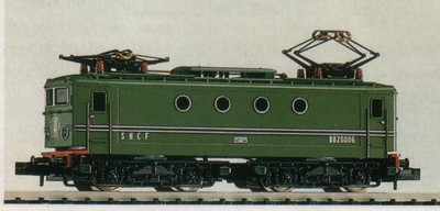 8051 Ancien logo blanc Quatre essieux moteur A noter que Minitrix a, suivant la disponibilité des pièces, monté cette locomotive avec des caisses et des pantographes du modèle des chemins de fer hollandais (NS) (modèle du bas). Emplacement du logo NS au centre de la caisse mais d'un seul côté Longueur : 82 mm Présentation Loco revue N° 264 Présentation Rail Miniature Flash N° 69 de mars 1968 Historique du modèle réel |