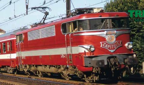 Logo spaghetti Plaques Capitole sur les deux faces frontales. Sic!... Une seule plaque était posée sur la face avant de la machine. De plus ces plaques sont moulées avec la caisse,ce qui ne permet pas de retirer la seconde. Volant d'inertie, 4 essieux moteurs, bandages d'adhérence Feux blancs ou rouges avants et arrières a leds suivant le sens de marche Modèle équipé d'origine d'un décodeur digital sonore Fonctionne en analogique et en digital Longueur : 125 mm Historique du modèle réel |