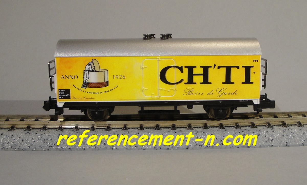 Wagon frigorifique blanc et jaune marquage