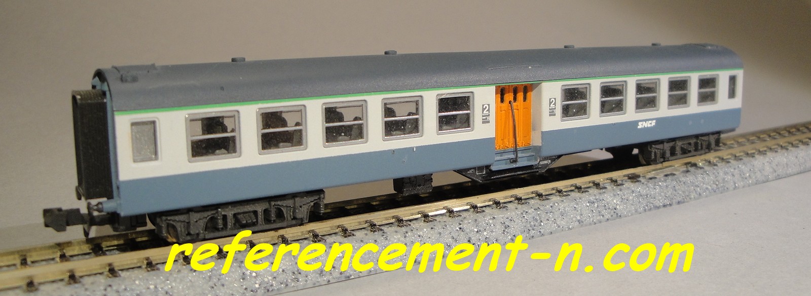 Fleischmann en option Longueur : 160 mm Présentation Rail Miniature Flash N° 339 de octobre 1992 Présentation Loco Revue N°552 de octobre 1992 Annonce Le Train N° 51 de juillet 1992 Présentation Le Train N° 55 de novembre 1992 Proposée à l'unité à la vente ou par coffret de 6 voitures : 3 1.Cl., une mixte générateur, un restaurant, un bar et une plaque frontale pour la locomotive Modèle de l'année 1992 FFMF/AFAN |