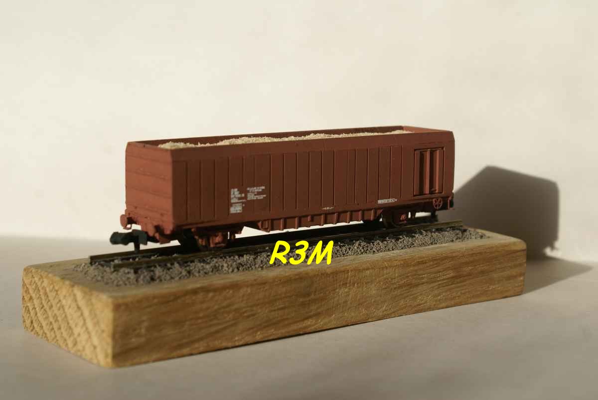 Wagons transport de sciure de bois type Fs marquage LA ROCETTE CEMPA (chargé) |