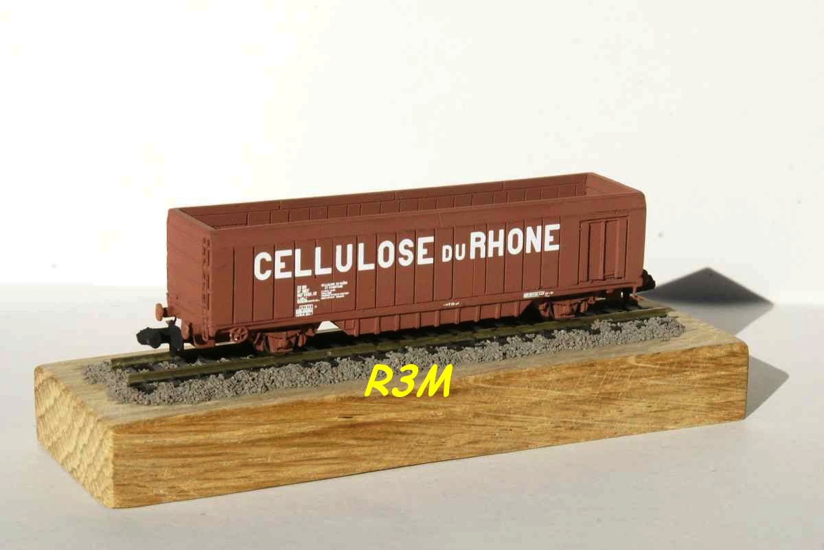 Wagons transport de sciure de bois type Fs marquage LA CELLULOSE DU RHONE (vide) |