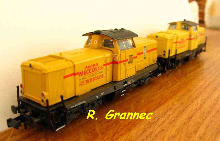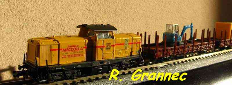 | Description | Couplage de locomotive V100 de la Société MECCOLI et avec plusieurs wagons de chantier | |