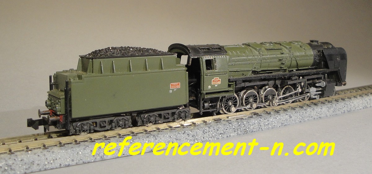 référence : 02106F Ancienne référence : 23209F Numérotation identique au modèle suivant Métal moulé sauf tender en plastique Moteur dans le tender entraînant les essieux de la locomotive Longueur : 143 mm Annonce dans Loco Revue N° 452 de septembre 1983 Présentation dans Rail Miniature Flash N° 238 de juillet/août 1983 Historique du modèle réel |