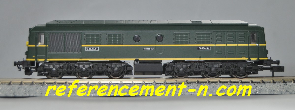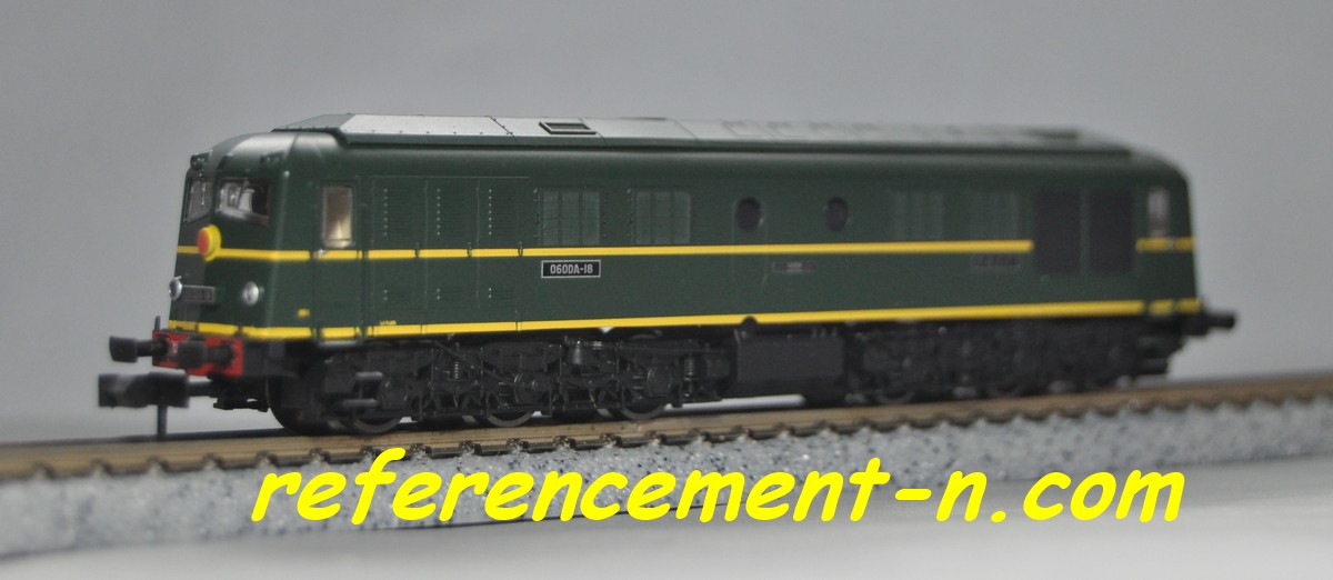 Ducasse de Perpignan pour la France. Modèle qui a circulé en Espagne sur le réseau RENFE entre juin et août 1956 autour de Madrid. Livrée verte avec traverses rouges, châssis noir et bandes de visibilité jaune bouton d'or Dépôt de la Plaine Inversion des feux Interface digitale NEM 651 Annonce dans Le Train N° 320 de décembre 2014 Attention référence identique à la 060DA-18 Modèle de l'année 2015 FFMF/AFAN Historique de cette série de machines |