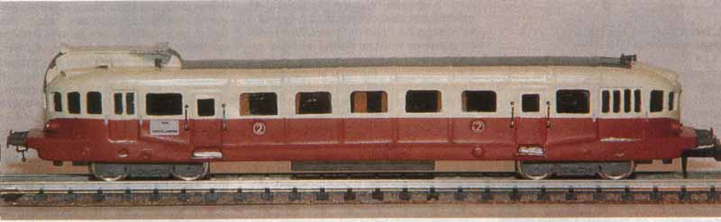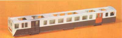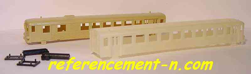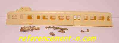 tôles ondulées. Caisse en résine. Caisse à poser sur motorisation Grafar ou Kato. Remorque livrée avec châssis. Longueur autorail ou remorque : 78 mm Annonce dans Loco Revue N° 450 de juin 1983 |