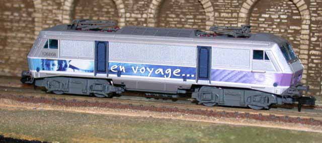 appelée Sybic Couleur de la livrée En Voyage : Gris métallisé avec un extrémité bleue et l'autre violette Caisse montée sur un châssis Fleischmann de BB-7200 Historique du modèle réel |