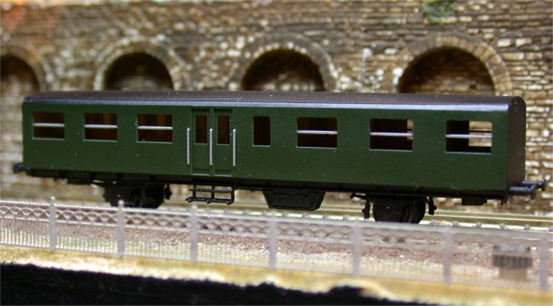 | Description | Voiture 2 essieux Sud Ouest modernisée 2eme Classe avec fourgon | |